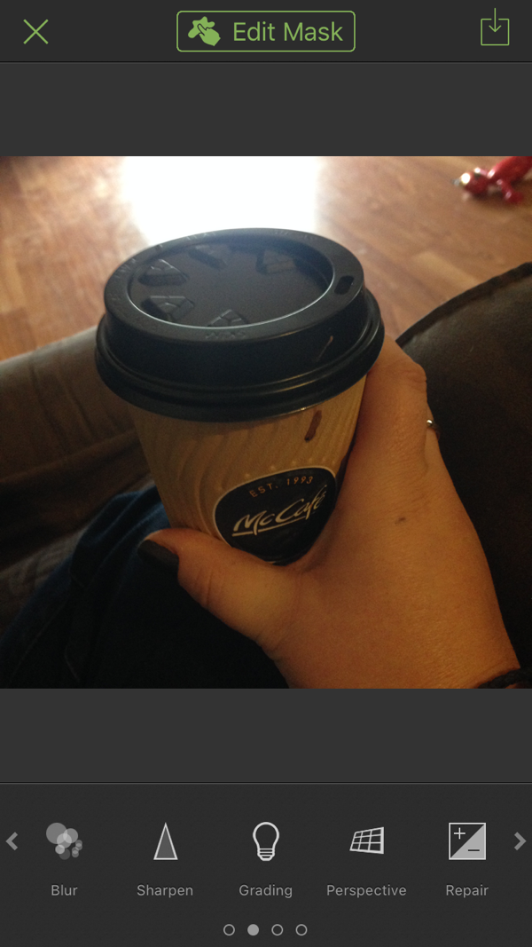 - To select the part of the picture you want unblurred (in this case the coffee cup and hand) you need to click the 'Create Mask' button at the top of the screen.